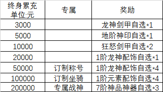 活动内容:单日实际充值达到对应活动标准金额,即可联系客服领取累充返利奖励,每档奖励每个角色每日只能领取一次